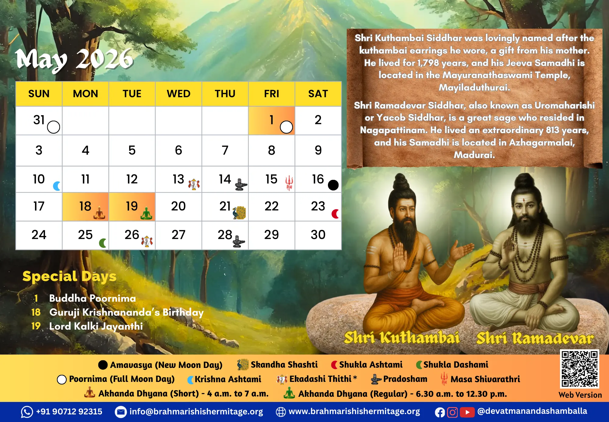 Devatmananda Shamballa founded Brahmarishis Hermitage in 2014, responding to the call of Saptharishis and Siddhas. He teaches advanced meditative practices, kriyas, yoga asanas, various positivisation methods, spiritual techniques and healing to the earnest seekers for their complete well-being.